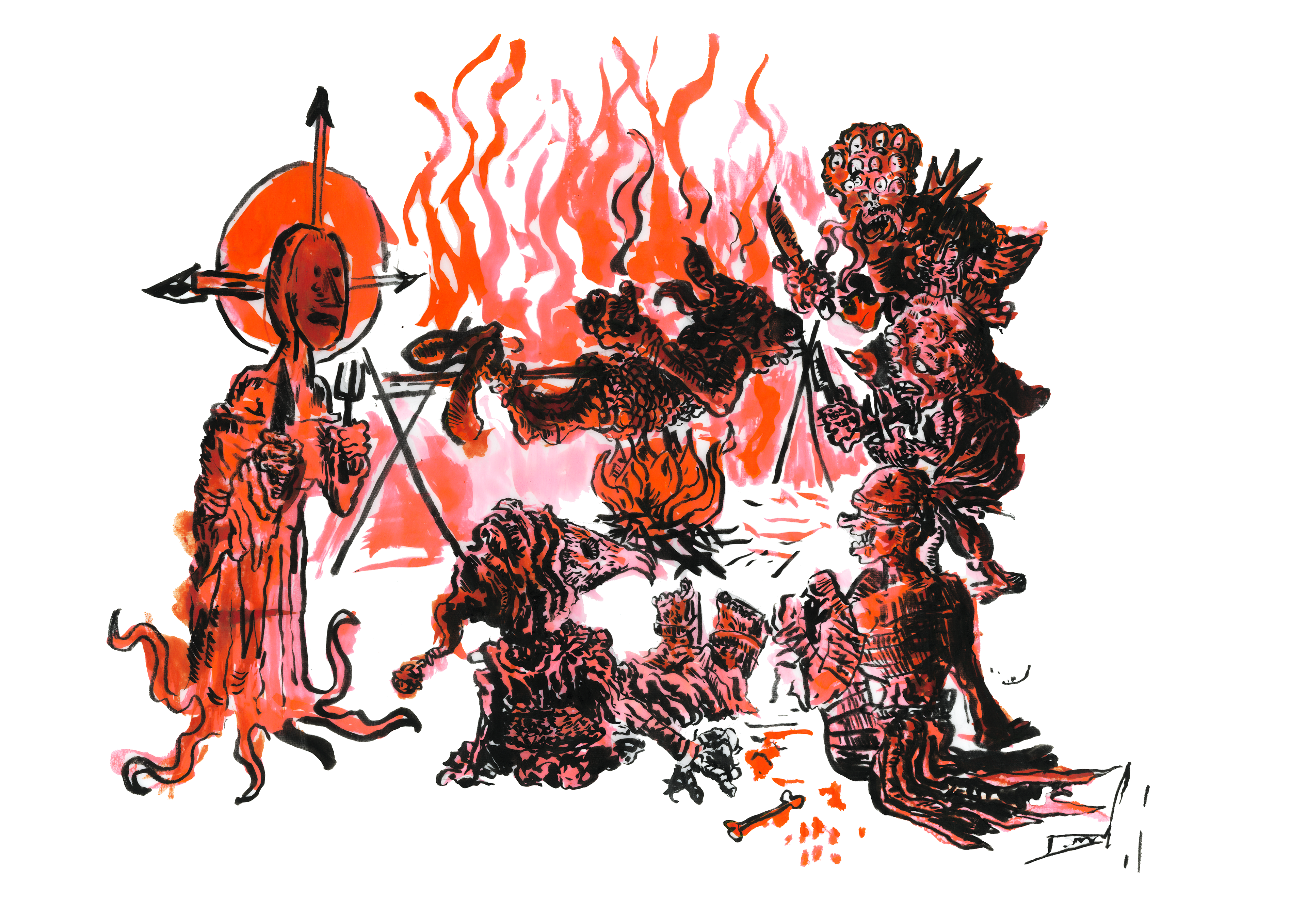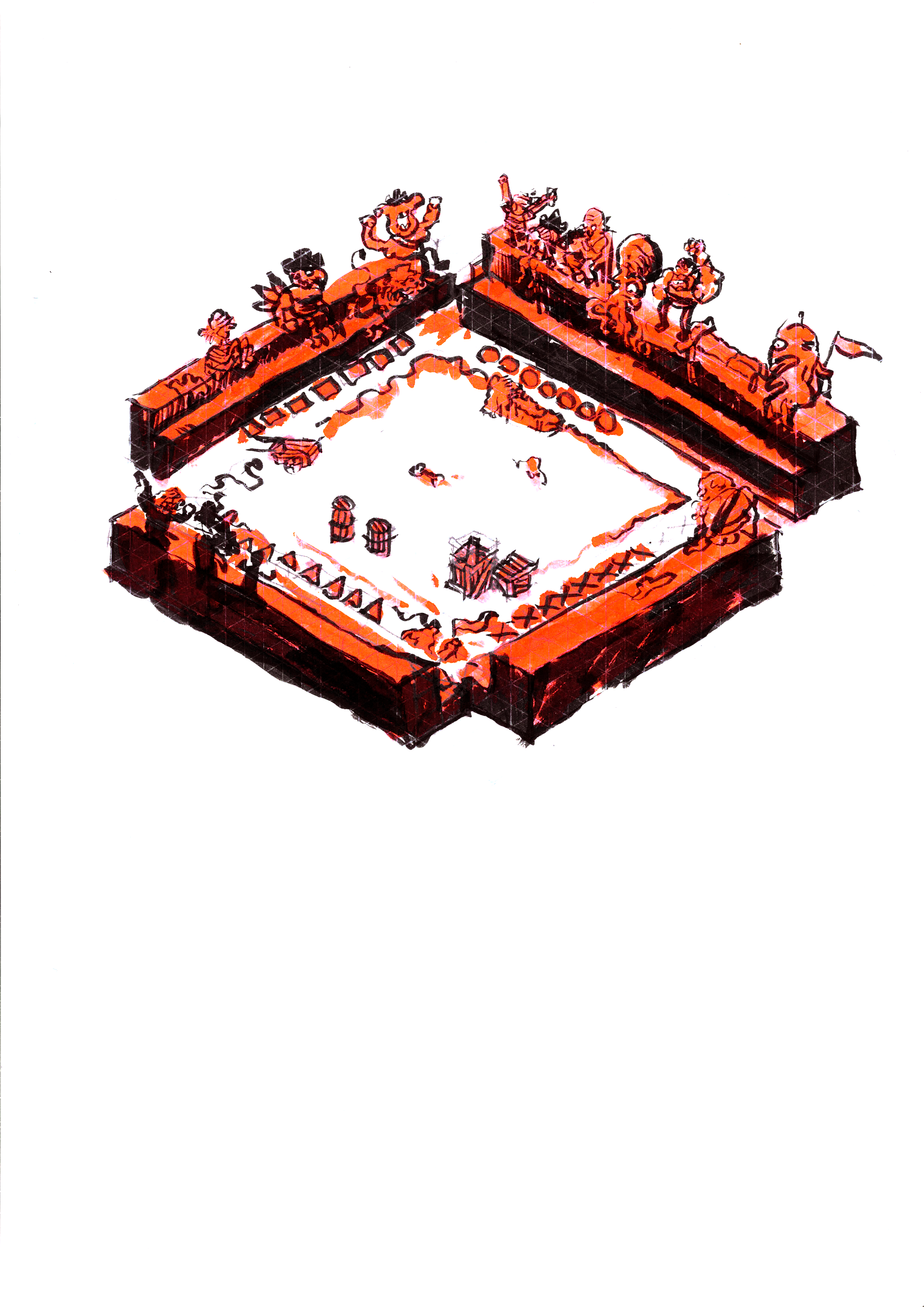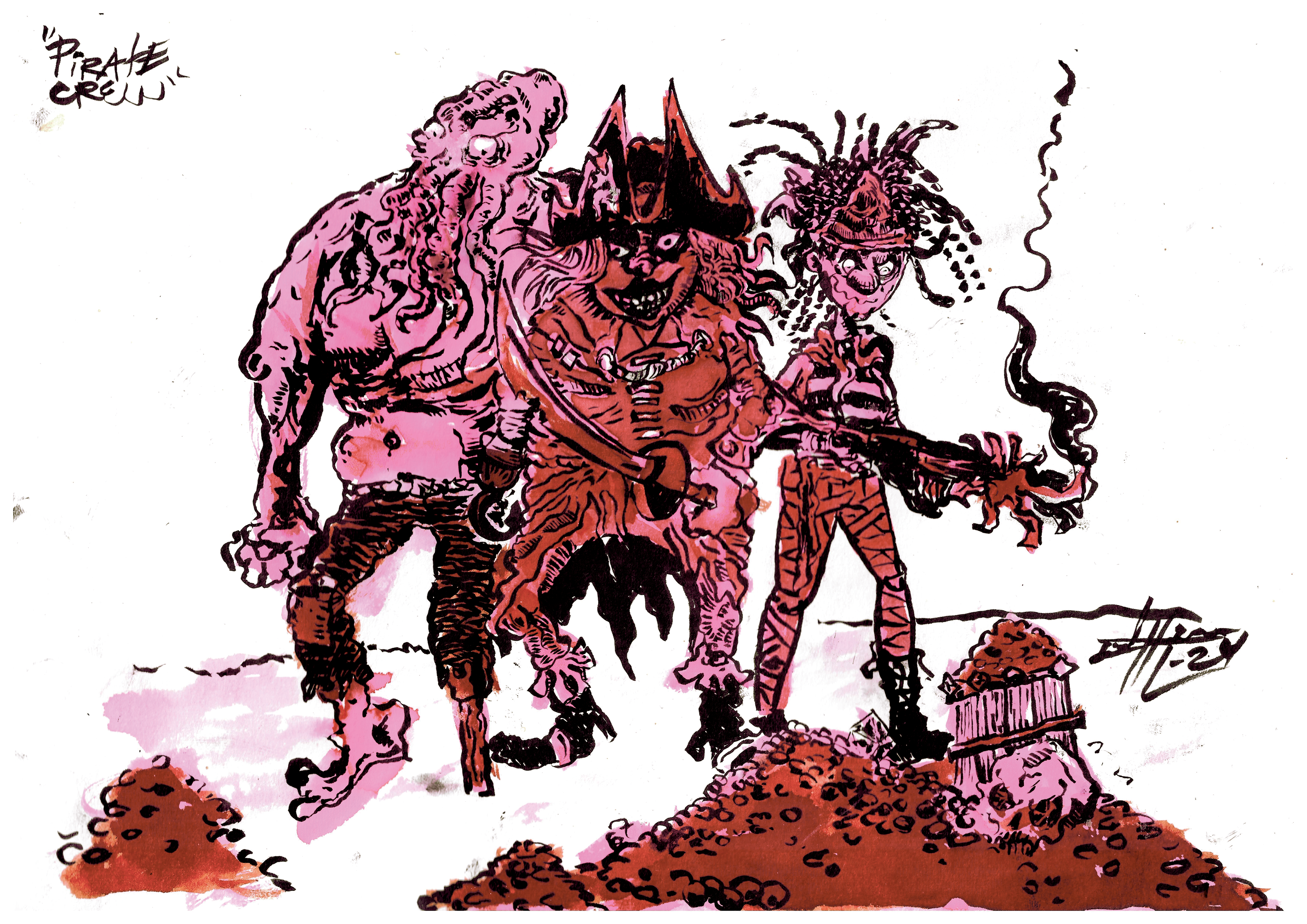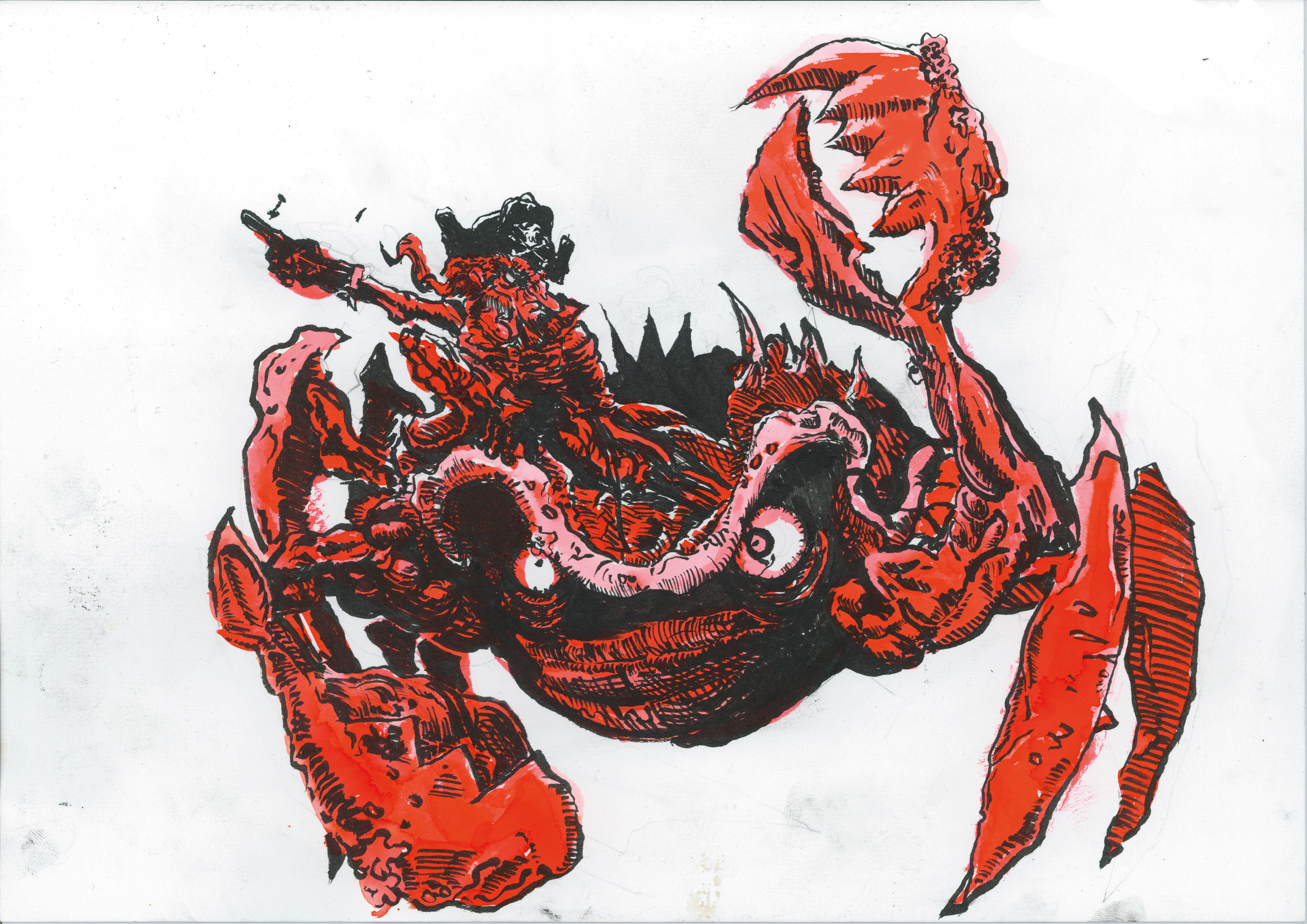 I requested to do this whole book in traditional ink. The only digital aspect of the work on these was digital clean-up and color correction (Which was a pain in the ass.) UPG is Stewart D'Silva's passion project to bring his favorite aspects from rules-lite adventure games like Pirate Borg to the wargaming table. Stew's a game designer by heart and is one of the nicest clients I've had the pleasure of working with. He put UPG is a miniature agnostic skirmish game with narrative elements and a co-op mode. You can get it for free or PWYW on itch.io I can't wait to see what Stew brews up in the future.